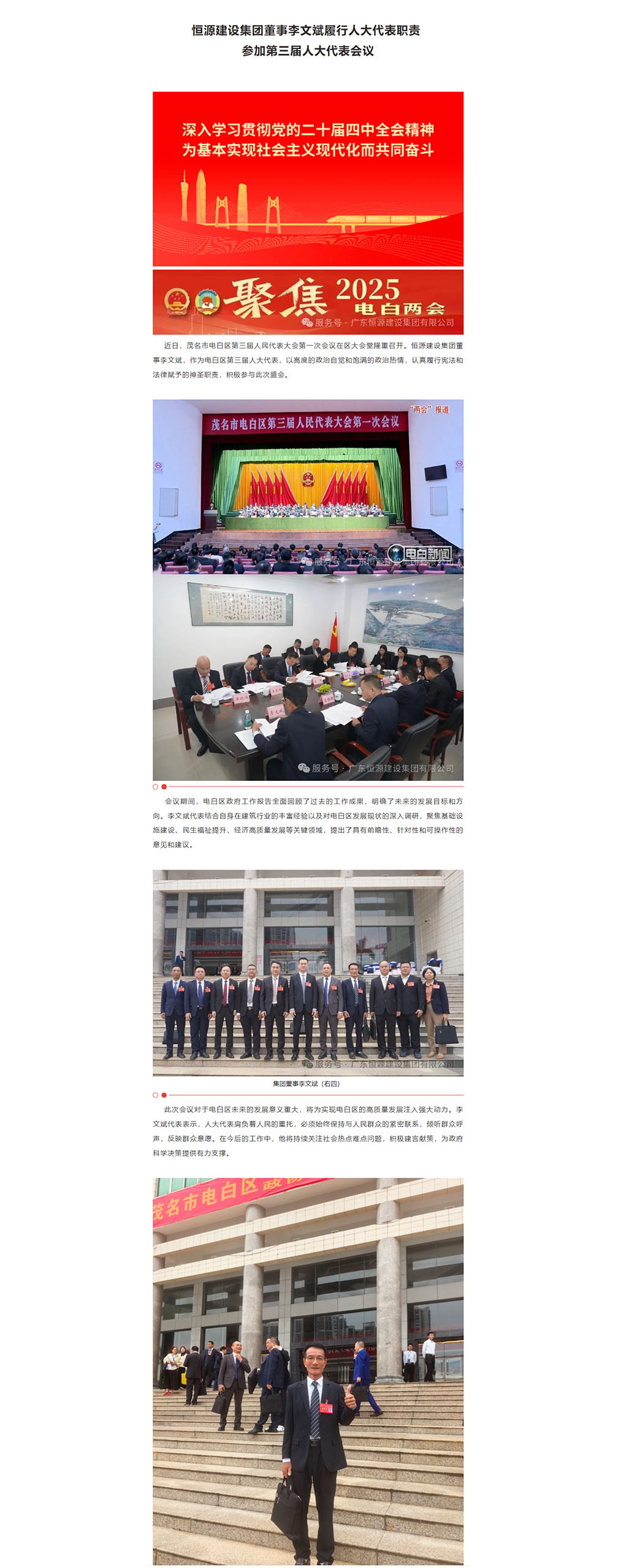 恒源建设集团董事李文斌履行人大代表职责 参加第三届人大代表会议
